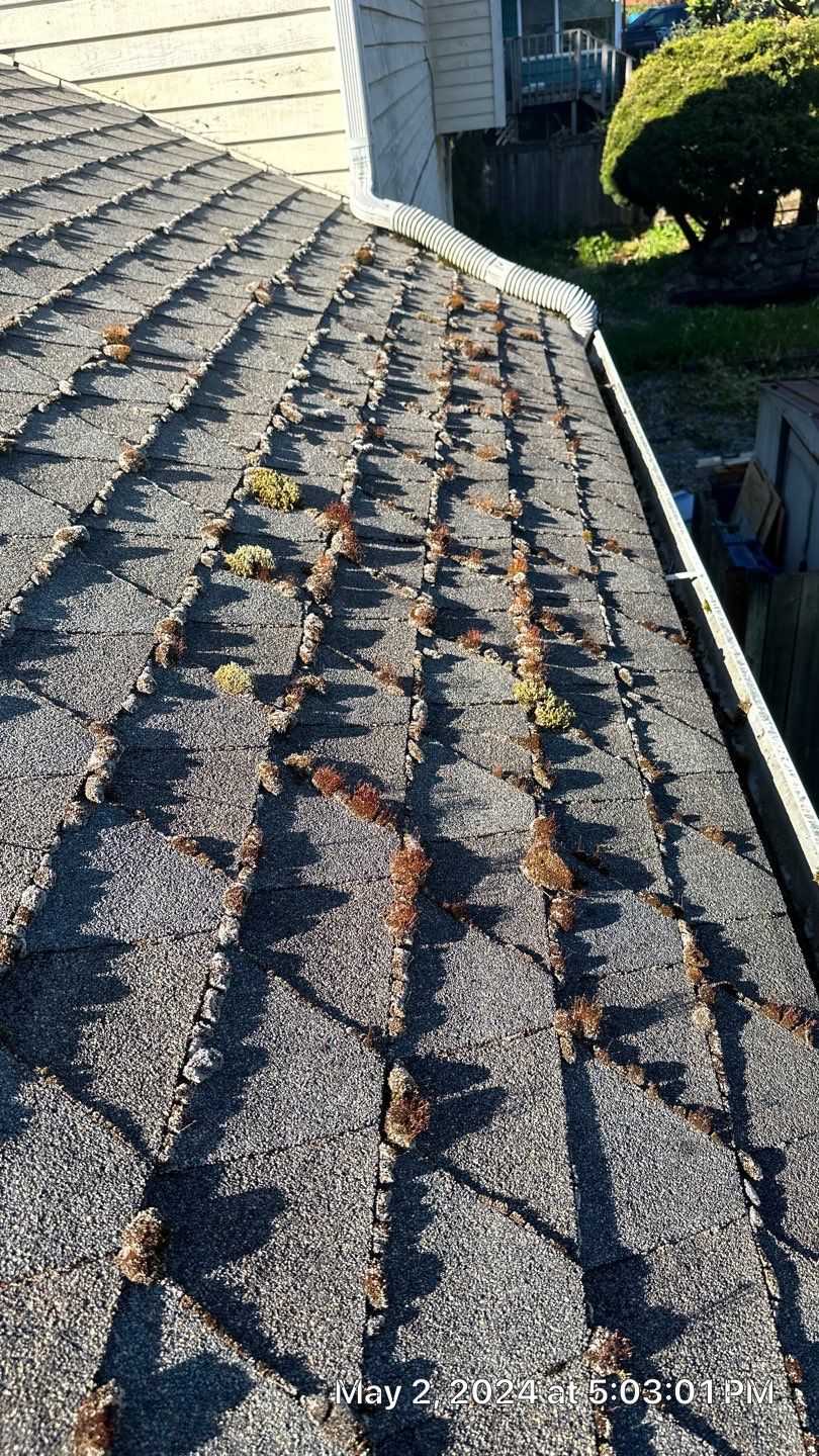 We eliminate moss at the root and apply preventative treatments to slow regrowth in high-moisture areas like Shoreline and Edmonds.